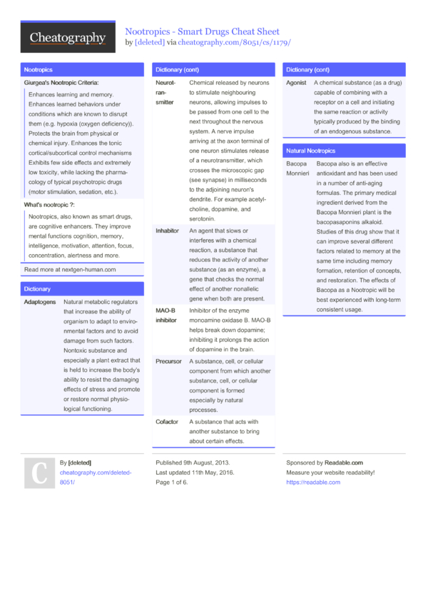 The best brain health supplement technique to get nutrients is thru a healthy food regimen. There is insufficient proof that multivitamins will enhance mind health. Few supplements have been fastidiously evaluated for their impact on mind well being, and amongst those that don't have any benefit has been discovered for individuals with otherwise normal nutrient levels. While issues with cognition have been related to specific nutritional deficiencies like B12, there’s little proof to suggest that day by day dietary supplements can have an effect on mind health in healthy older adults. Consumption of fatty fish and other seafood could profit cognitive function, but there may be much less proof to advocate taking supplements like omega-3 or fish oil. There’s additionally insufficient evidence that other supplements can benefit brain well being; be wary of exaggerated or obscure claims by manufacturers or distributors. Ingredients in supplements can fluctuate extensively and are usually not reviewed by the FDA for purity - some may even be dangerous. GCBH called for natural brain health supplement supplement manufacturers to conduct and publish rigorous, scientific studies, topic to independent peer evaluate to guage supplements’ effects on brain well being. According to at least one knowledgeable on the current Gerontological Society of America conference, some present complement ads are so misleading they should not only be pulled however the CEOs ought to go to jail. “People are losing their cash on this crap. Journalists can talk to native pharmacists about supplement use and whether they recommend any supplements or vitamins for brain well being, boosting reminiscence or staving off dementia. Why or why not? What do prospects who purchase these merchandise think? Do they know the trade is unregulated and these merchandise untested? Are there any state legal guidelines requiring a complete disclosure or further disclaimers? What native packages are available in your community for either physical or social activity to help cut back the danger of developing dementia? (Image: https://media.cheatography.com/storage/thumb/deleted-8051_nootropics-smart-drugs.600.jpg)